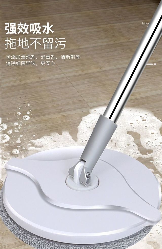 免手洗旋转拖把, 纳米拖布, 吸附灰尘和毛发, 干湿两用, 悬空离心甩水, 节水, 易清洁, 不脏手.