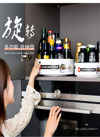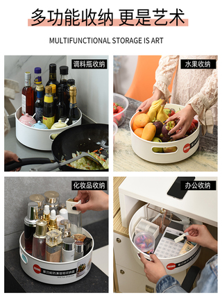 360度双向旋转, 大容量旋转收纳盒, 方便查找物品.